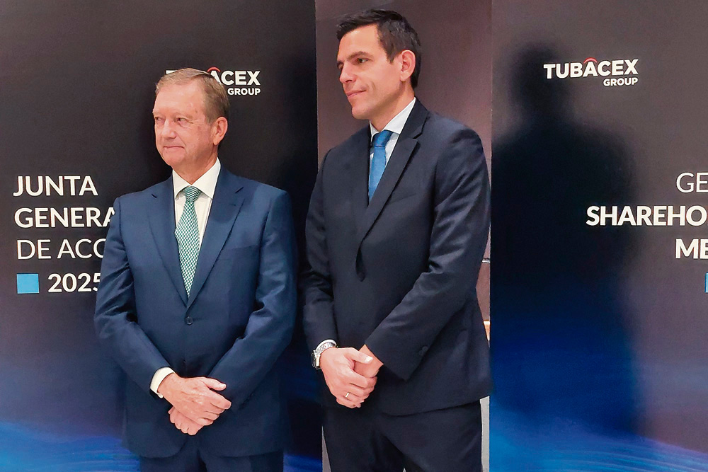 Tubacex , que cerró el pasado ejercicio con unos ingresos de 767,5 millones de euros, un ebitda de 107 millones de euros y un beneficio neto atribuible de 22,9 millones de euros, consolidando sus márgenes a pesar de operar en un contexto volátil, mantiene sus expectativas de cara a un año 2025 que puede ser muy positivo en el que los contratos firmados con Adnoc y Petrobras generarán un impacto “gradual” en sus ingresos, así como una reducción de deuda.El consejero delegado, Josu Imaz, y el presidente de Tubacex, Manuel Moreu, comparecieron ante los medios poco antes de celebrar en Bilbao su Junta General de Accionistas 2025, en el que se dio