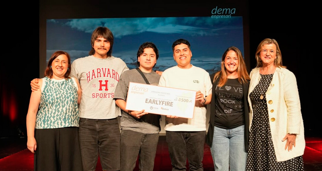 'EarlyFire', premiado con 1.500 euros, una plataforma de detección temprana de incendios forestales mediante IA. Del centro Zabalburu Ikastetxe.