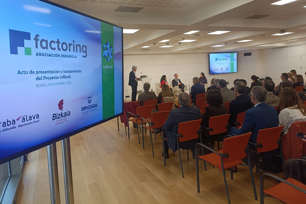 El Palacio Euskalduna de Bilbao ha acogido la presentación en Euskadi de InBlock, plataforma impulsada por la Asociación Española de Factoring. A través de tecnología 'blockchain', esta plataforma va a permitir la verificación y validación de facturas, favoreciendo, de este modo, la financiación de créditos comerciales a las pequeñas y medianas empresas (pymes). Se trata de facilitar y acelerar los procesos operativos de las entidades usuarias, permitiéndoles verificar la autenticidad de los datos de las facturas que reciben de sus clientes empresariales (pymes y grandes compañías) y contribuir a la prevención del fraude.