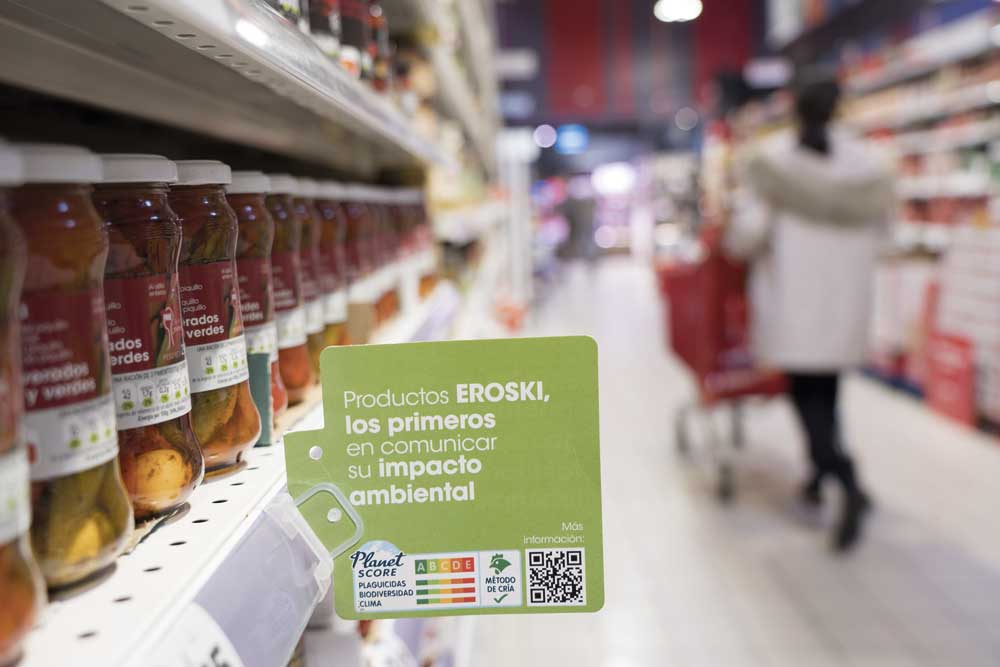 Las personas consumidoras buscan cada vez más información sobre los productos que compran. Por ello, Eroski trabaja por ofrecer una información amplia, completa y veraz sobre la composición de los productos, a la vez que informa sobre los beneficios de mantener una nutrición variada y equilibrada. Hace un año Eroski se convirtió en la primera empresa de distribución en España en introducir un nuevo etiquetado ambiental en una decena de productos de su marca. Recientemente, las tiendas Eroski han ampliado a 29 los productos de alimentación y frescos señalizados con el sello Planet Score. De esta manera Eroski avanza en sus compromisos por fav