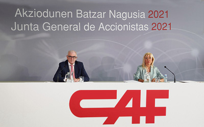 El presidente de CAF, Andrés Arizkorreta, destacó durante la reciente Junta de Accionistas la sólida cartera de pedidos del grupo, que garantiza un futuro “excelente” y resaltó su liderazgo en proyectos sostenibles y de e-movilidad, de la mano de Solaris, que logró un “récord” de ventas el pasado año.Durante su intervención ante los accionistas, Arizkorreta resaltó la capacidad del grupo para “emerger más fuerte” de la crisis del covid, y aseguró que seguirá “creciendo de modo rentable, con una mayor diversidad de productos, servicios y mercados”. En esta línea, indicó que la cartera de pedidos “continuó en niveles elevados (8.807 millones