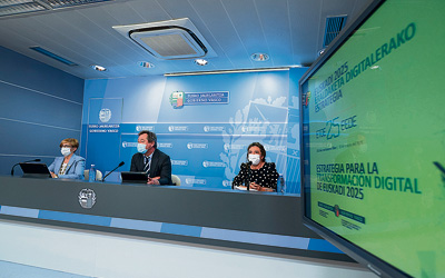 El Gobierno vasco ha dado luz verde a la ‘Estrategia para la Transformación Digital de Euskadi 2025’ (ETDE2025) cuyo objetivo prioritario es transformar de forma disruptiva los sectores productivos para una industrialización inteligente 4.0. Cuenta con un presupuesto mínimo conjunto de 1.400 millones de euros hasta 2025, un importe que incluye tanto la digitalización de sus propios procesos, servicios y adquisición y mantenimiento de sus equipamientos informáticos, como el impulso de la transformación digital de los agentes externos que están dentro de sus respectivas competencias. La consejera de Desarrollo Económico, Sostenibilidad y Medi