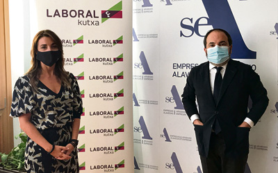 Las empresas de Álava podrán beneficiarse de nuevas líneas especiales de financiación en condiciones preferentes, fruto del acuerdo firmado entre Laboral Kutxa y SEA Empresas Alavesas, convenio que contempla productos y servicios específicos para hacer frente a las dificultades causadas por el covid-19. De hecho, la situación generada por la pandemia mantiene un impacto determinante entre las empresas alavesas, una cuarta parte de las cuales se verá obligada a reducir su plantilla, con ajustes por encima del 20% en el 23% de los casos, según las previsiones que maneja SEA. Complicada situación que se ha visto refrendada también por las encu