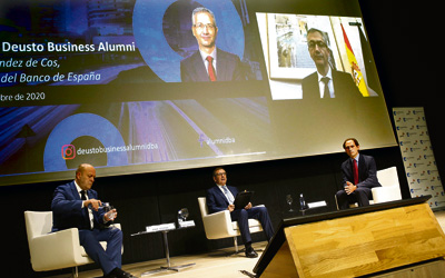 El presidente del Banco de España. Pablo Hernández de Cos, considera que el escenario de nuevas fusiones bancarias, tanto a nivel nacional como europeo, se podría ver ampliado en un futuro no muy lejano por cuanto pueden suponer una mayor eficiencia, “siempre y cuando no comprometan la competencia” y “garanticen la estabilidad financiera”. Así lo afirmó en un encuentro organizado el pasado 1 de octubre por Deusto Business Alumni en el que participó, a través de conexión online, y en el que se puso sobre la mesa el papel de la política monetaria ante la crisis generada por el covid-19. El encuentro, organizado en colaboración con PwC en el P