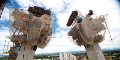 Ulma está participando en la construcción del Arco de Innovación, en Brasil. Se trata de un puente atirantado que conectará las avenidas Zarur, São João y Cassiano Ricardo en São Paulo. Con 100 m de altura, se ha convertido en uno de los puentes más característicos del país en su tipología, dada su peculiar forma en arco. Para este proyecto, el equipo de ingeniería de Ulma ha desarrollado una solución integral con los sistemas y aplicaciones de encofrado y andamio idóneos para los pilonos y las calzadas que discurren entre ellos.
