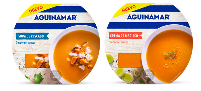 Angulas Aguinaga, compañía multinacional de alimentación con sede en Irura (Gipuzkoa), ha introducido una nueva categoría de producto a través de su marca Aguinamar. El lanzamiento de una sopa de pescado y una crema de marisco responde al objetivo de la compañía, explican sus responsables, “de innovar en el desarrollo de productos que permitan a los consumidores incorporar a su dieta productos del mar de calidad, de forma fácil, rápida y sencilla”.A través de Aguinamar, las dos nuevas referencias se presentan en formato individual En palabras de Mikel Grande, director de Marketing e Innovación de Angulas Aguinaga, “trabajamos constantemente p