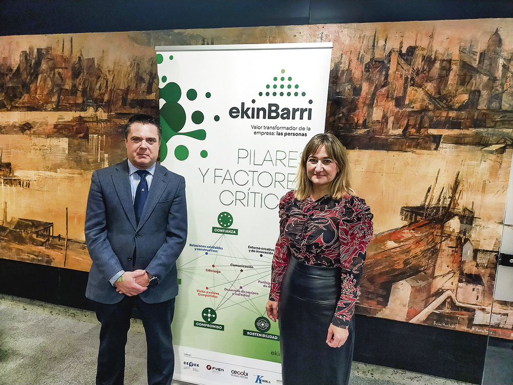 EkinBarri nació hace seis años con el firme objetivo de apoyar a las empresas vizcaínas en el desarrollo de un proceso de transformación interna enfocado en las personas. En este periodo, la iniciativa ha logrado que más de un centenar de pymes y grandes empresas estén actualmente desarrollando el programa, al tiempo que ha formado a 150 equipos en el método ekinBarri. Marta Martínez y Jorge Petralanda, coordinadores de la iniciativa, se muestran muy satisfechos de los resultados obtenidos por esta iniciativa, impulsada por las asociaciones empresariales Cebek, FVEM, Cecobi, Ascobi y AveqQuímica y en las que colabora la Diputación de Bizkaia.