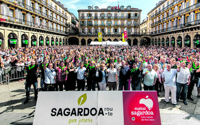 Un total de 48 sidrerías vascas elaboran sidras con D.O. Euskal Sagardoa a partir de las manzanas, aptas y reguladas para la Denominación, de 270 productores. 34 de estas sidrerías, pertenecientes a Sagardoa Route, ofrecieron al público sus mejores sidras de la cosecha 2018 en el Sagardo Eguna celebrado el 7 de septiembre en la Plaza de la Constitución donostiarra. En esta cita se celebró una cata oficial de las sidras Euskal Sagardoa y se pudo degustar también el primer mosto elaborado con la cosecha 2019. Los responsables de la D.O. Euskal Sagardoa destacaron que “la apuesta del sector es clara: origen y calidad con la manzana local como base y con el objetivo de traccionar el primer sector y ofrecerle a la sidra un futuro fructífero”.