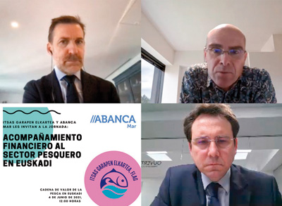 Abanca e Itsas Garapen Elkartea celebraron recientemente un encuentro digital para analizar las alternativas de financiación del sector pesquero en Euskadi, en el que participaron el director general de Pesca y Acuicultura del Gobierno vasco, Leandro Azkue, el director de Abanca Mar, Javier Fraga, y el coordinador de esta división fuera de Galicia, Mikel Eraso. Los representantes de la entidad bancaria desgranaron la propuesta de valor que el banco lanzó al sector hace cinco años, pionera dentro del sector financiero, y que plantea una fórmula comercial que aúna el amplio conocimiento acumulado del sector, con productos a medida y gestores especializados centrados en las necesidades de las empresas y profesionales del mundo del mar.