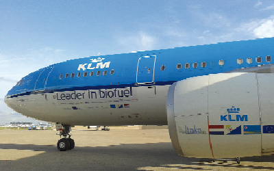 Además, en 2011 KLM fue la primera aerolínea en utilizar biocombustible para vuelos comerciales entre Ámsterdam y París. Los vuelos con biocombustible reducen las emisiones de carbono hasta un 80%, ejerciendo un mínimo impacto sobre la biodiversidad. Actualmente realiza las rutas Ámsterdam-Los Ángeles y Ámsterdam-Växjö (Suecia), con biocombustible. El grupo Air France KLM invierte de forma continua en una flota más moderna y eficiente. Actualmente cuenta con 19 nuevos Boeing 787 Dreamliners, más ligeros y menos ruidosos (-40%), con un consumo de un 20% menos de combustible que un avión de tamaño similar. Con estas iniciativas se acerca al objetivo de reducir las emisiones de carbono en un 20% por pasajero para 2020.