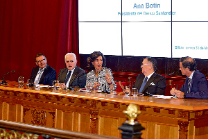 Euskadi es buen ejemplo de competitividad, con “grandes empresarios que se están reinventando y exportando”, en un país que lleva “cuatro años de recuperación económica y creación de empleo”, logros que se aprecian más en el exterior que aquí, y que se traducen en una apuesta del capital extranjero por invertir en España, si bien puede ocurrir que esto no continúe ante la existencia de riesgos, “no sólo aquí sino también en Europa” por lo que la presidenta del Banco Santander, Ana Botín, apelaba a mantener la “seguridad” y a “reducir la incertidumbre”.