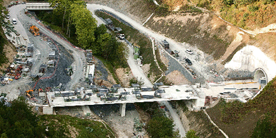 Vista aérea de uno de los tramos en construcción del TAV, en Gipuzkoa.