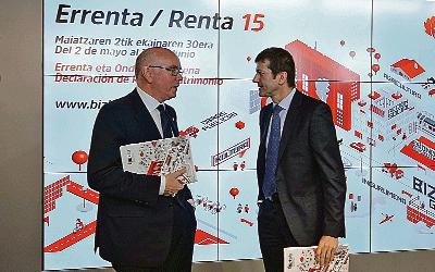 Responsables de la Hacienda de Bizkaia, en la presentación de la campaña del IRPF 2015.