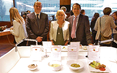 El viceconsejero Bittor Oroz, Lourdes Alonso, de Eurest Euskadi, y Rogelio Pozo, director de Azti.