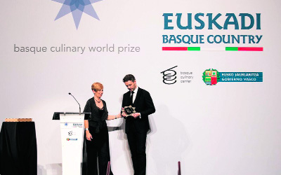 El chef Jock Zonfrillo recibió de manos de la consejea Arantxa Tapia, el Basque Culinary World Prize 2018.