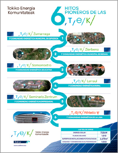 Edinor, la filial de Petronor que impulsa la transición energética apostando por la innovación tecnológica y las energías renovables, ha conceptualizado un nuevo modelo de Comunidades Energéticas Locales /Tokiko Energía Komunitateak (TEK) que empodera y hace a la ciudadanía protagonista del proceso. Seis proyectos están en marcha en Euskadi y 50 más, en cartera.