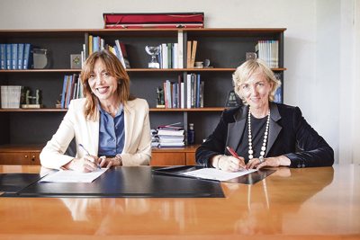 La rectora de la UPV/EHU, Eva Ferreira, y la presidenta de Cebek, Carolina Pérez Toledo, firmaron un acuerdo de colaboración.