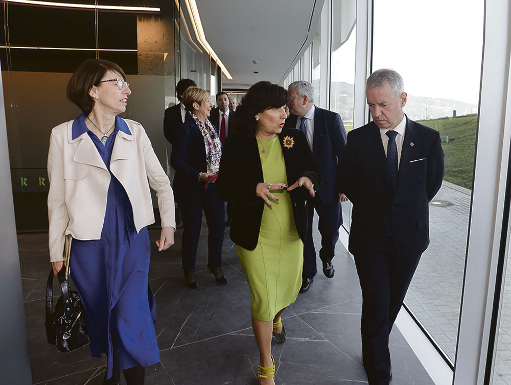Durante su intervención en la presentación del Campus de Abanto, la presidenta de los Parques Tecnológicos de Euskadi, Estíbaliz Hernáez, (a la izquierda de la imagen, junto a la directora, Itziar Epalza, y el lehendakari) dijo que este nuevo espacio “supone un importante hito para Bizkaia y Euskadi, y especialmente para los Parques Tecnológicos, en su apuesta por la creación de unos ecosistemas más sostenibles y eficientes; y, en este caso concreto, por las energías limpias, uno de los sectores RIS3 promovidos por el Gobierno vasco”. En esta línea se expresó el lehendakari, quien abogó por consolidar y seguir mejorando la posición de Euskadi en el ámbito energético europeo, “porque este sector es clave en nuestro país”. “Este es el camino para consolidar la competitividad, garantizar el crecimiento y seguir creando nuevas oportunidades de empleo”, añadió Urkullu. Cabe destacar que el proyecto de hidrógeno en el Campus de Abanto incluye la construcción de una canalización específica –hidroducto– desde el electrolizador de 2,5 MW de la refinería de Petronor, que proporcionará hidrógeno verde para el EIC, la sede de la energética en el Campus, nuevas soluciones de movilidad e, incluso, el Living Lab del Hidrógeno. Construido por Nortegas, es el primer hidroducto realizado en España. Ya está finalizado y puede entrar en funcionamiento en cuanto lo requieran las empresas.