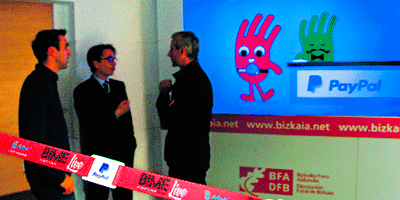 Christophe Cassan, de BIME, Asier Alea, de la Diputación de Bizkaia, y Raimundo Sala, de PayPal, en la presentación.