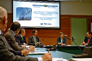 Por otro lado, en cumplimiento con los objetivos marcados por la Unión Europea, el Gobierno vasco ha asumido el liderazgo de las políticas de sostenibilidad energética a través del Decreto 178/2015 de 22 de septiembre, sobre la sostenibilidad energética del sector público de Euskadi. Así, la consejera de Desarrollo Económico y Competitividad, Arantxa Tapia, ha presidido la constitución de la Comisión Interdepartamental de Desarrollo Sostenible, encargada de aplicar el mencionado decreto que hará del sector público vasco un modelo en la aplicación de medidas de eficiencia, ahorro de energía y sostenibilidad en todos los departamentos, entes y sociedades públicas dependientes del Gobierno vasco.