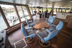 El diseño del buque noruego, dedicado al transporte y procesado de salmón, ofrece altos niveles de confort para su tripulación.