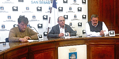 El alcalde de Donostia, Juan Karlos Izaguirre, flanqueado por el concejal Josu Ruiz y el gerente de Fomento, Euken Sesé.