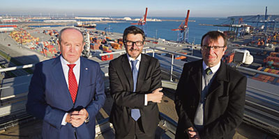 El nuevo presidente y el secretario general de Puertos del Estado, Álvaro Rodríguez y Alvaro Sánchez , respectivamente, visitaron recientemente los enclaves de Bilbao y Pasaia, donde mantuvieron sendas reuniones con los presidentes de la Autoridad Portuaria de Bilbao (APB), Ricardo Barkala (en la imagen), y de la Autoridad Portuaria de Pasaia (APP), Joaquín Telleria, sus equipos directivos y diversas empresas que operan en las dársenas vascas. Además de recorrer y conocer de cerca las instalaciones portuarias y los proyectos llevados a cabo y que se van a desarrollar en ellas, los responsables de Puertos del Estado abordaron con los presidentes de la APB y la APP temas de interés como el Brexit, la intermodalidad y la sostenibilidad.