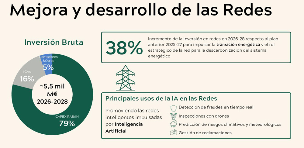 Entre los grandes objetivos para el periodo 2026-2028 destacan: alcanzar los 13,2 GW de capacidad renovable instalada; lograr que el 90 % de la producción eléctrica peninsular esté libre de emisiones; reforzar y digitalizar las redes de distribución, mejorar la calidad del suministro y facilitar la integración de las energías renovables; e impulsar la electrificación de los usos energéticos de los clientes.
