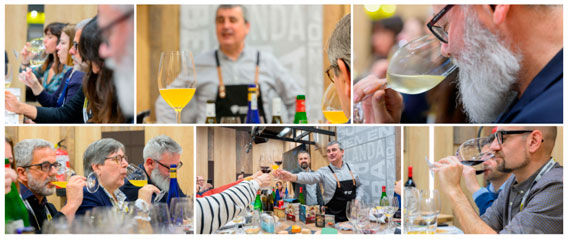 Expresiones y términos como “abrir la nariz”, sensación en boca, proceso de envejecimiento, aromas a bollería, viveza, “kili -kili” (cosquilleo en euskera), acidez fresca, herbáceos y cítricos han marcado el guion de una sesión en la que se ha disfrutado de la divulgación de la cultura del vino y de la sidra así como del disfrute en boca al catar las bebidas.