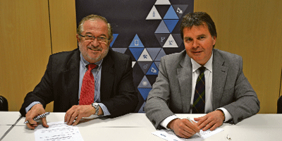 El director ejecutivo de Relais (Red Latinoamericana de la Industria del Software), Fredy Betancourt, y el director general de GAIA, Tomás Iriondo, firmaron el acuerdo en Bilbao.