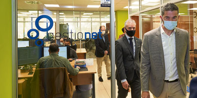 Juan de Miguel, socio fundador y CEO de Grupo Gestionet, muestra la compañía al lehendakari, Iñigo Urkullu.