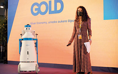 La ‘silver economy’ abre un nicho de oportunidad de negocio que algunas compañías ya están conquistando. Muestra de ello son las cuatro iniciativas de éxito que Adinberri presentó en la jornada. El proyecto ‘Resivoz’, de Caser Residencia, Vicomtech y Resiplus, utiliza la interacción por voz para optimizar el registro de información en los centros residenciales; de la mano de Ubikare y Mutua Madrileña, ‘Ubikare-Naiha’ propone un sistema de enfermería inteligente que, a través de IA, ayuda a los profesionales a tomar las mejores decisiones. ‘Wattio-Zaintek’, en el que participan Wattio y el servicio de teleasistencia Beti ON del Gobierno vasco, usa la tecnología en el cuidado de las personas mayores que viven solas, en tanto que la francesa Kompai Robotics, (en la imagen inferior) diseña y aplica la robótica asistencial al servicio de los mayores.