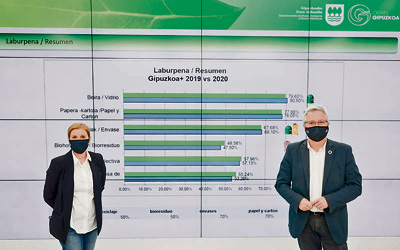 Los datos de recogida selectiva y reciclaje de residuos urbanos del año 2020 fueron dados a conocer por el diputado de Medio Ambiente y Obras Hidráulicas, José Ignacio Asensio, quien destacóque "incluso en una época atípica como la actual marcada por la pandemia, el modelo guipuzcoano de residuos ha seguido mejorando sus resultados y consolidando su liderazgo en Euskadi y en el Estado".