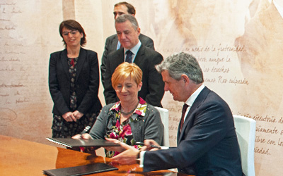 Arantxa Tapia y Francisco Riberas firmaron el acuerdo, en presencia del lehendakari Urkullu.
