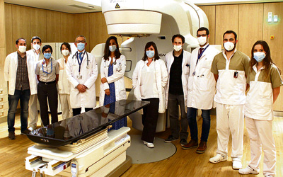 Equipo de Oncología Radioterápica de la clínica IMQ Zorrotzaurre, junto a un nuevo acelerador lineal.