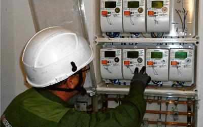 Un operario de Iberdrola comprueba los nuevos contadores inteligentes.