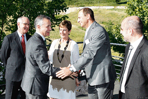 El lehendakari Iñigo Urkullu saluda a los directivos del centro tecnológico IK4-Ikerlan.