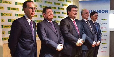 Juan Carlos Andueza (Pamplona, 1959) ha tomado el relevo de Basilio San Gabriel al frente de la delegación territorial de la ONCE en Euskadi. Continuará desarrollando así su labor profesional vinculada desde 1987 a la Organización en Navarra, en la que ha ocupado distintos cargos de responsabilidad. Ingeniero Industrial por la UPV-EHU, Andueza gestionará a partir de ahora una delegación con 3.500 afiliados a los que se ofrece servicios en materia de educación, formación, ocio y cultura para lograr su plena integración social y laboral. En la imagen, Javier Dominguez, presidente de la Territorial; Angel Sánchez, director general de la ONCE; el alcalde de Bilbao, Juan Mari Aburto; el nuevo delegado, Juan Carlos Andueza; y el saliente, Basilio San Gabriel, tras el acto de relevo.