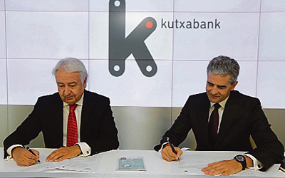Pedro Campo, presidente de Cecobi, e Ibon Imatz, director de la Red Minorista de Kutxabank, renovaron un convenio de financiación.