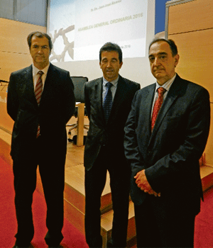 Luis Fernando Martínez y Aitor Alzola, director gerente y presidente de AVIC, flanquean a Juan José Álvarez Rubio.