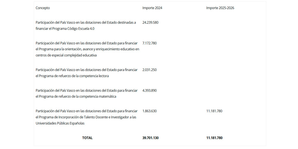 Estas cifras se ajustan a lo previsto por las instituciones vascas para la elaboración de los presupuestos 2025 y dan cobertura a las cuantías contempladas para su diseño.