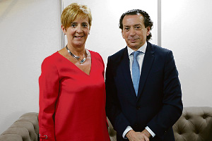 La consejera de Desarrollo Económico e Infraestructuras del Gobierno vasco, Arantxa Tapia, con el ministro de Producción, Dante Rica, a quien expresó el interés de gobierno y empresas vascas por participar en las licitaciones públicas en el país.