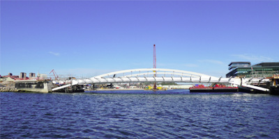 La infraestructura, que une San ignacio con la isla de Zorrozaurre, ya ha sido anclada a su ubicación definitiva