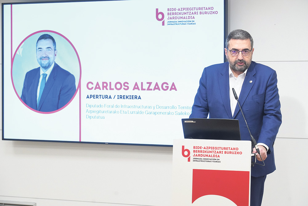 La jornada contó con la participación del diputado foral de Infraestructuras y Desarrollo Territorial de la Diputación Foral de Bizkaia, Carlos Alzaga, que protagonizó la apertura institucional de un evento que estuvo estructurado en tres bloques: sostenibilidad y economía circular; digitalización, datos y gestión inteligente de la movilidad; y mantenimiento de infraestructuras inteligentes: datos, IA y nuevas tecnologías. Junto a una mesa final con los máximos responsables de los tres clústeres industriales. Alzaga afirmó que “renovar y reforzar las alianzas estratégicas garantizan la continuidad del trabajo” realizado para diseñar el Plan de Innovación y Sostenibilidad de las Infraestructuras Viarias de Bizkaia 2024-2027 en el que “los clústeres tuvieron un papel referencial en su redacción”, siendo ejemplos de colaboración público-privada en la gestión inteligente de las carreteras.