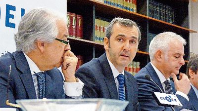 Iñaki Garcinuño, presidente de Cebek, junto a miembros de la Junta Directiva de la patronal vizcaína. (J. Blasco)