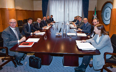 Reunión del Consejo Vasco de Finanzas Públicas (CVFP), integrado por el Gobierno vasco, las tres diputaciones forales y la Asociación de Municipios Vascos (Eudel).