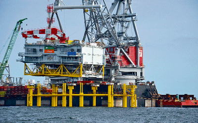 Una vez endurecido el hormigón, se instalaron y unieron los dos ‘topsides’ sobre la ‘jacket’. Tras la finalización del montaje de los topsides, comenzó la puesta en marcha de los componentes eléctricos de la subestación, como transformadores, interruptores y sistemas de protección y control.