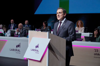 En la parte final de su discurso, Xabier Egibar ha dejado a un lado números y ratios, para centrarse en los aspectos más cualitativos que definen la propia esencia de Laboral Kutxa explicitando el compromiso de ser una organización referente que coopere en la construcción de comunidades más prósperas, igualitarias y sostenibles.