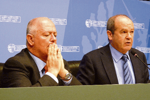 El viceconsejero de Empleo Ricardo Barkala, a la derecha, junto al responsable de Lanbide, Adolfo Alustiza.