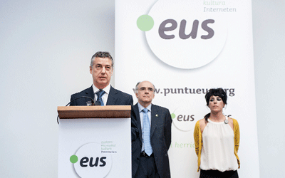Con motivo del Euskaren Eguna del pasado año, la sede de EiTB acogió a comienzos de diciembre la celebración de un hito en la trayectoria del dominio .eus, que se abrió activando 1.192 nuevos nombres, que se sumaron a los 100 que se habían puesto en marcha a finales de junio. El lehendakari del Gobierno vasco, Iñigo Urkullu, presidió el acto, en el que aseguró que “gracias a .eus, el de hoy es un día del euskera más internacional” y adelantó que el Gobierno que lidera iba a actualizar sus 200 dominios para que sean .eus. Urkullu animó a sumar el máximo de adhesiones a esta iniciativa que representa “el futuro del euskera y de la Euskadi global”, afirmó.